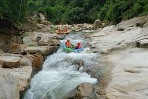 将军关探险漂流起于上游皖宁国市毛坦村境内,终于下游浙安吉县郎村境内,全长2.2公里,全程落差约130米,最大落差达10米,总投资约1000万